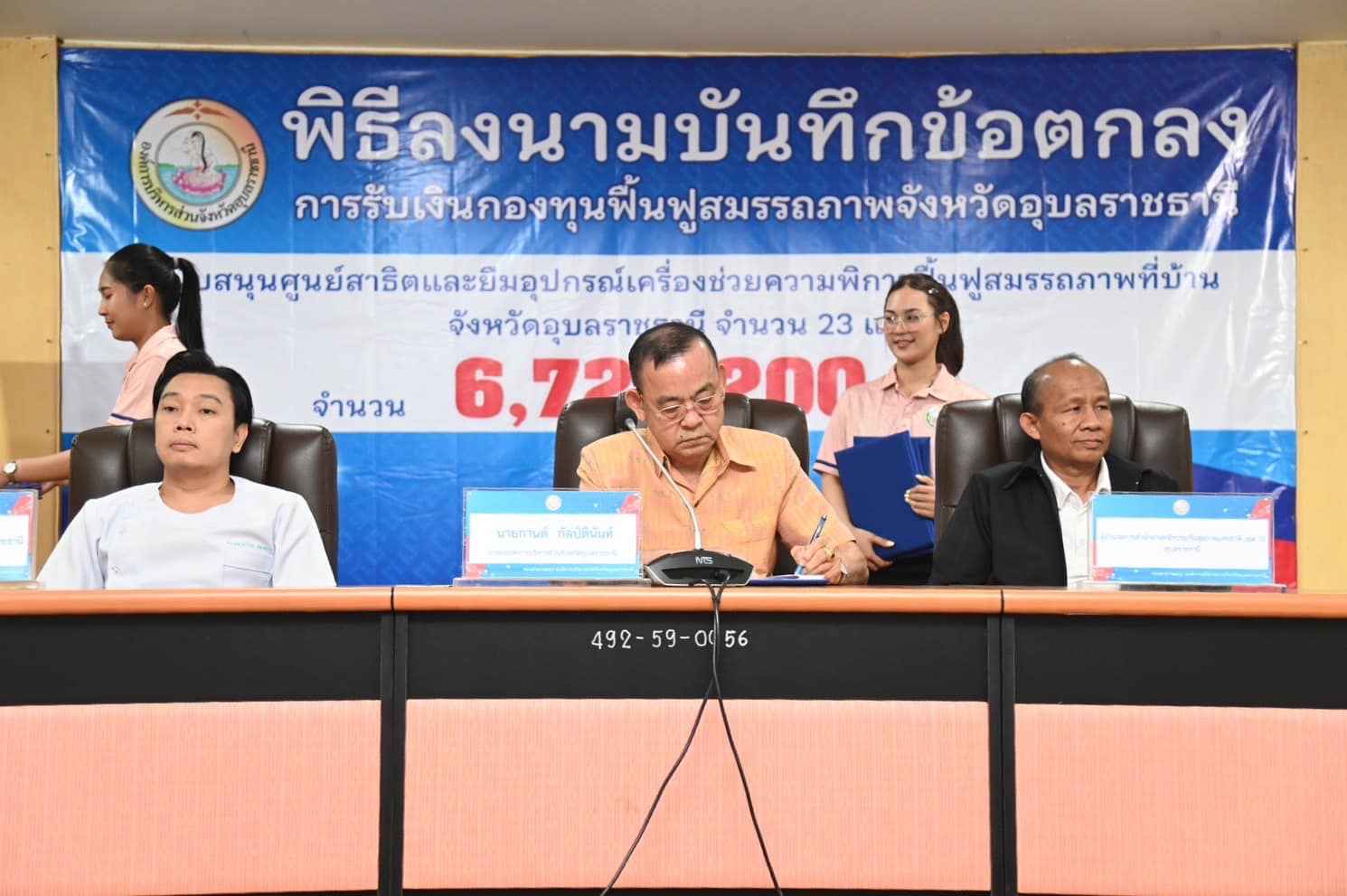 รวมเป็นเงินทั้งสิ้น 6,727,200.-บาท ทั้งนี้เพื่อให้คนพิการ ผู้สูงอายุ ผู้ป่วยที่อยู่ในระยะกึ่งเฉียบพลัน และผู้ที่มีภาวะพึ่งพิงในเขตพื้นที่จังหวัดอุบลราชธานี ได้รับบริการฟื้นฟูสมรรถภาพทางการแพทย์ที่จำเป็นต่อสุขภาพ รวมทั้งได้มอบเครื่องช่วยกายอุปกรณ์และอุปกรณ์ที่เกี่ยวกับการบริการทางการแพทย์ได้อย่างทั่วถึง มีประสิทธิภาพ และเพื่อให้เป็นไปตามประกาศคณะกรรมการหลักประกันสุขภาพแห่งชาติ เรื่องหลักเกณฑ์การดำเนินงานและบริหารจัดการกองทุนฟื้นฟูสมรรถภาพระดับจังหวัด พ.ศ.2562 ต่อไป