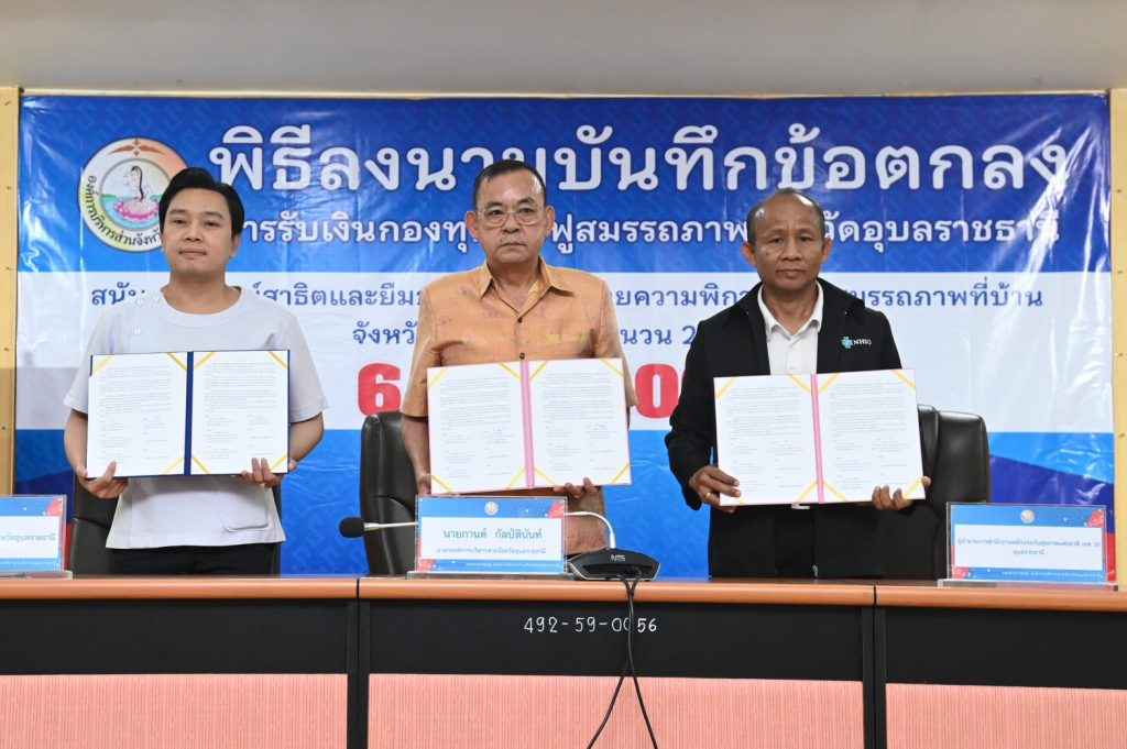 ร่วมกับ หน่วยบริการสาธารณสุข ทั้ง 23 แห่ง ในจังหวัดอุบลราชธานีร่วมลงนามบันทึกข้อตกลงการมอบเงินกองทุนฟื้นฟูสมรรถภาพจังหวัดอุบลราชธานี