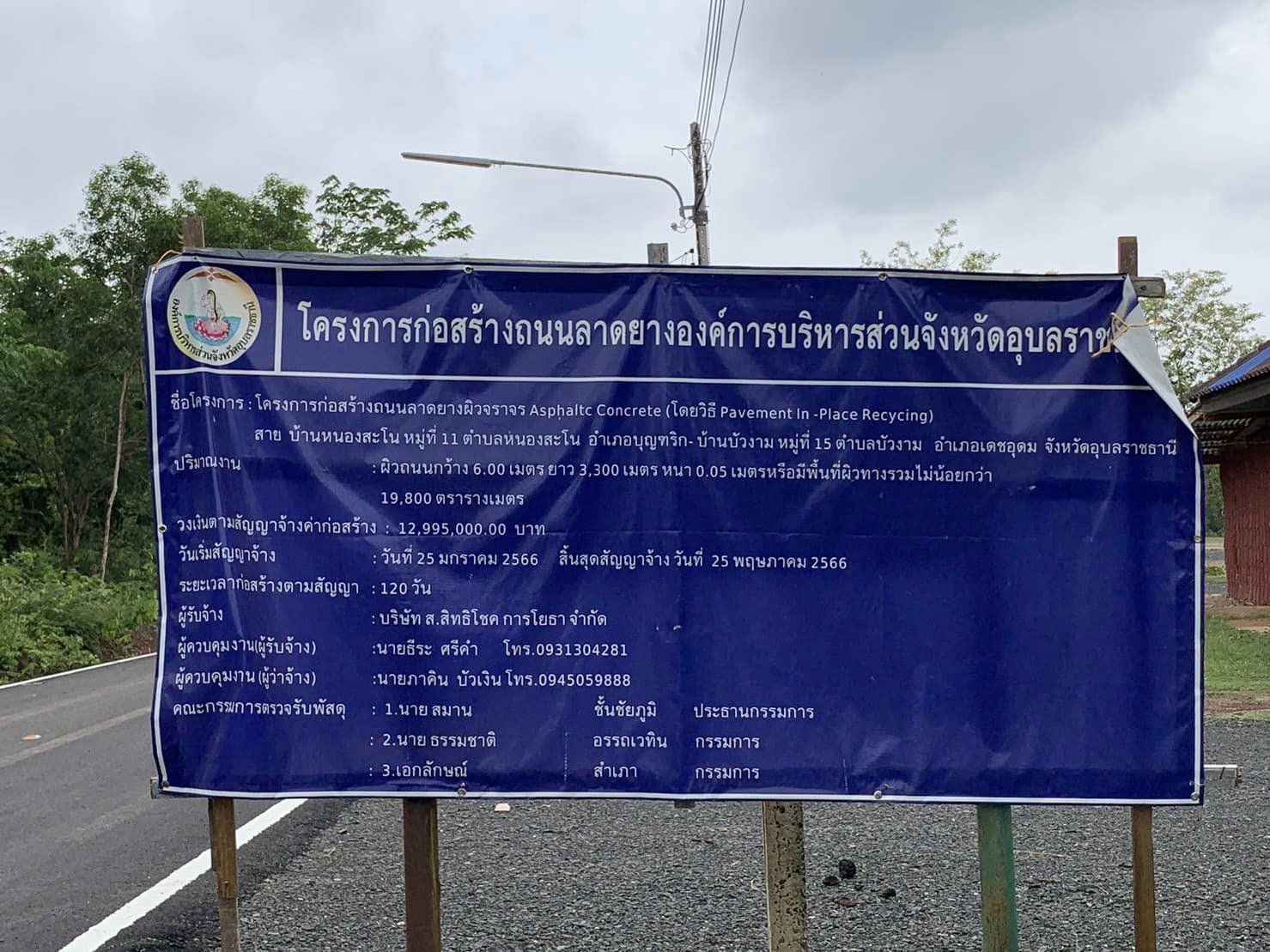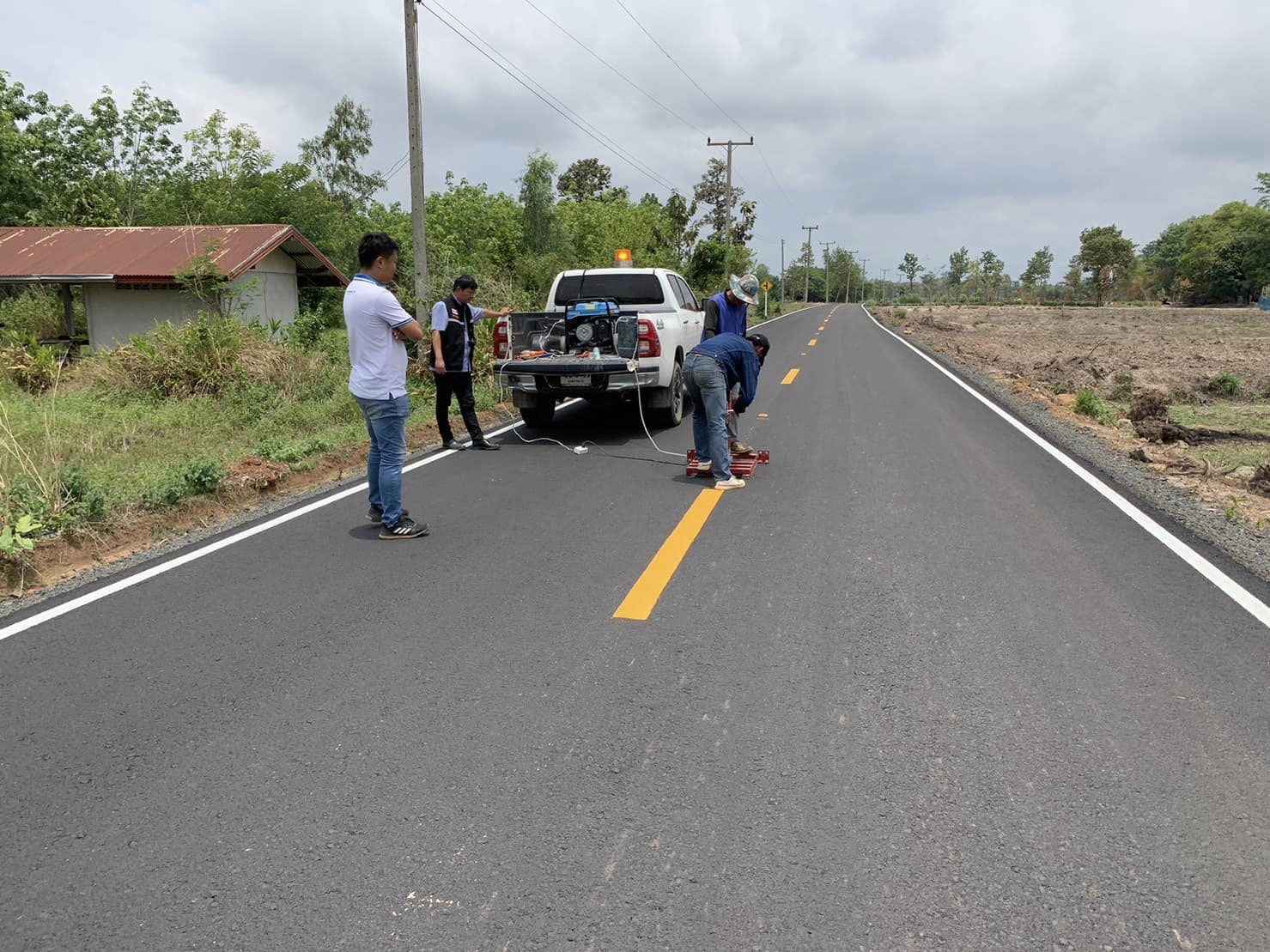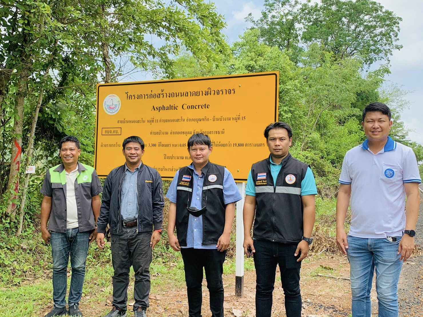 นายเอกลักษณ์ สำเภา วิศวกรโยธาชำนาญการ พร้อมผู้ควบคุมงาน นายภาคิน บัวเงิน วิศวกรโยธาชำนาญการ ออกตรวจสอบโครงการก่อสร้างถนนลาดยางผิวจราจร Asphaltic Concrete สายบ้านหนองสะโน หมู่ที่ 11 ตำบลหนองสะโน อำเภอบุณฑริก – บ้านบัวงาม หมู่ที่ 15 ตำบลบัวงาม อำเภอเดชอุดม จังหวัดอุบลราชธานี