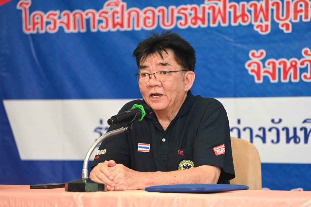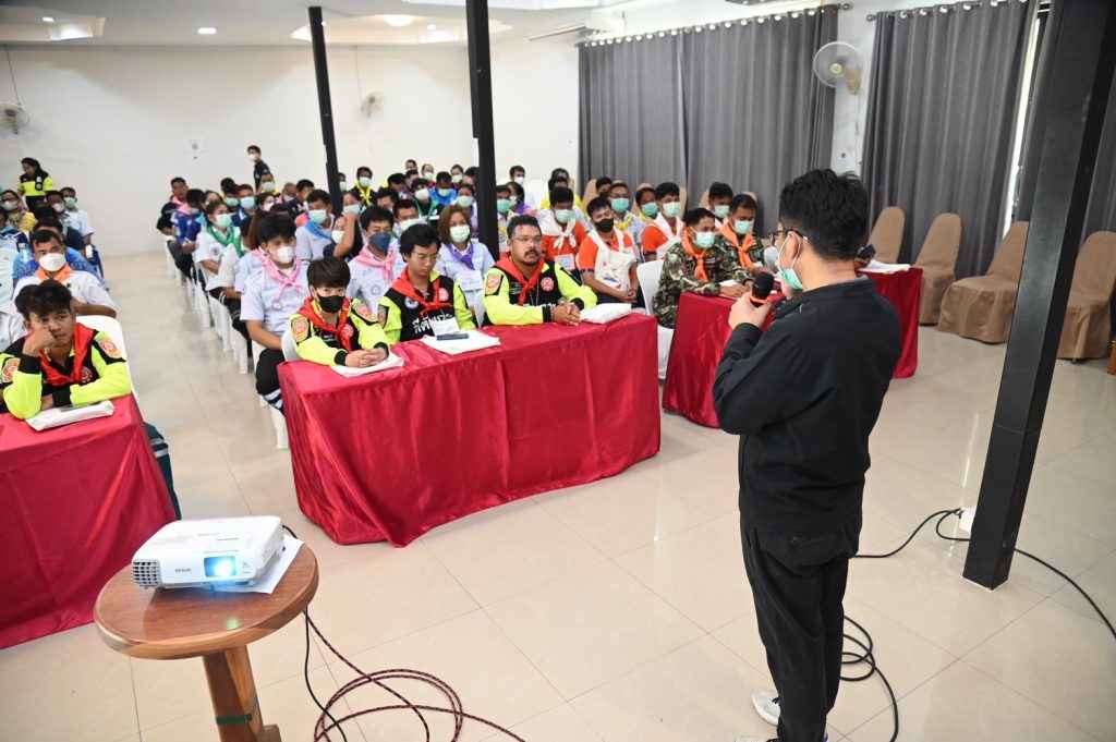 โดยมีวิทยากรบรรยายให้ความรู้ภาคทฤษฎี ได้แก่ การสาธิตการปฏิบัติการช่วยเหลือผู้ป่วยฉุกเฉินและผู้บาดเจ็บฉุกเฉิน, การประเมินสภาพผู้เจ็บป่วยฉุกเฉิน, การช่วยฟื้นคืนชีพขั้นพื้นฐาน (Basic Life Support CPR), การใช้เครื่องกระตุกหัวใจไฟฟ้าอัติโนมัติ รวมทั้งการเคลื่อนย้ายผู้ป่วยด้วยแผ่นกระดานรองหลังแบบยาวตามหลัก PHTLS และการช่วยคลอดฉุกเฉิน ตลอดจนการทดสอบการฝึกปฏิบัติตามสถานการณ์จำลอง (Simulation) 6 ฐาน