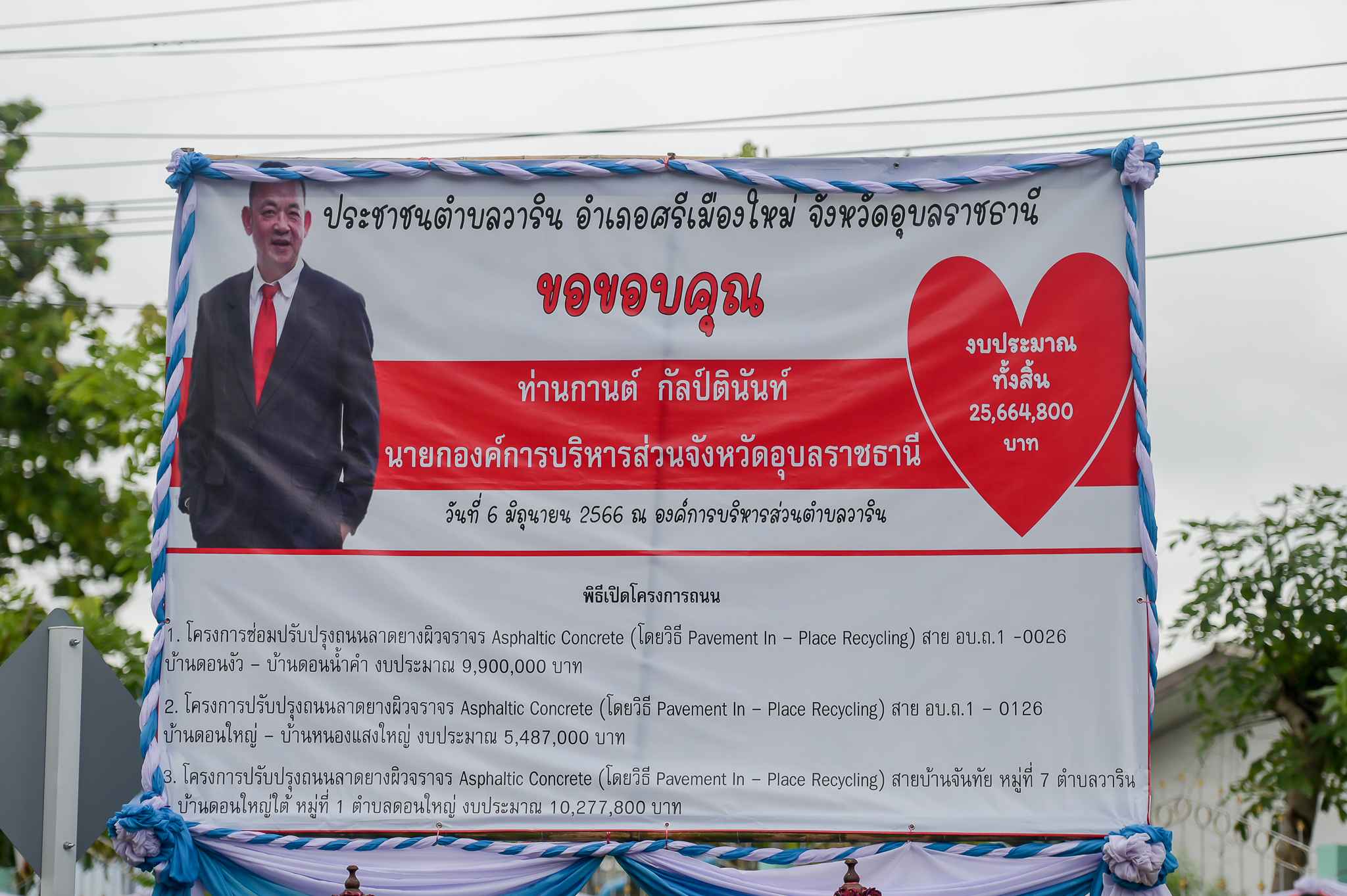 เปิดถนน ตามโครงการปรับปรุงถนนลาดยางผิวจราจร Asphaltic Concrete (โดยวิธี Pavement ln- Place Recycling ) พร้อมพบปะพี่น้องประชาชน ต.วาริน ณ อบต.วาริน อ.ศรีเมืองใหม่ จ.อุบลราชธานี
