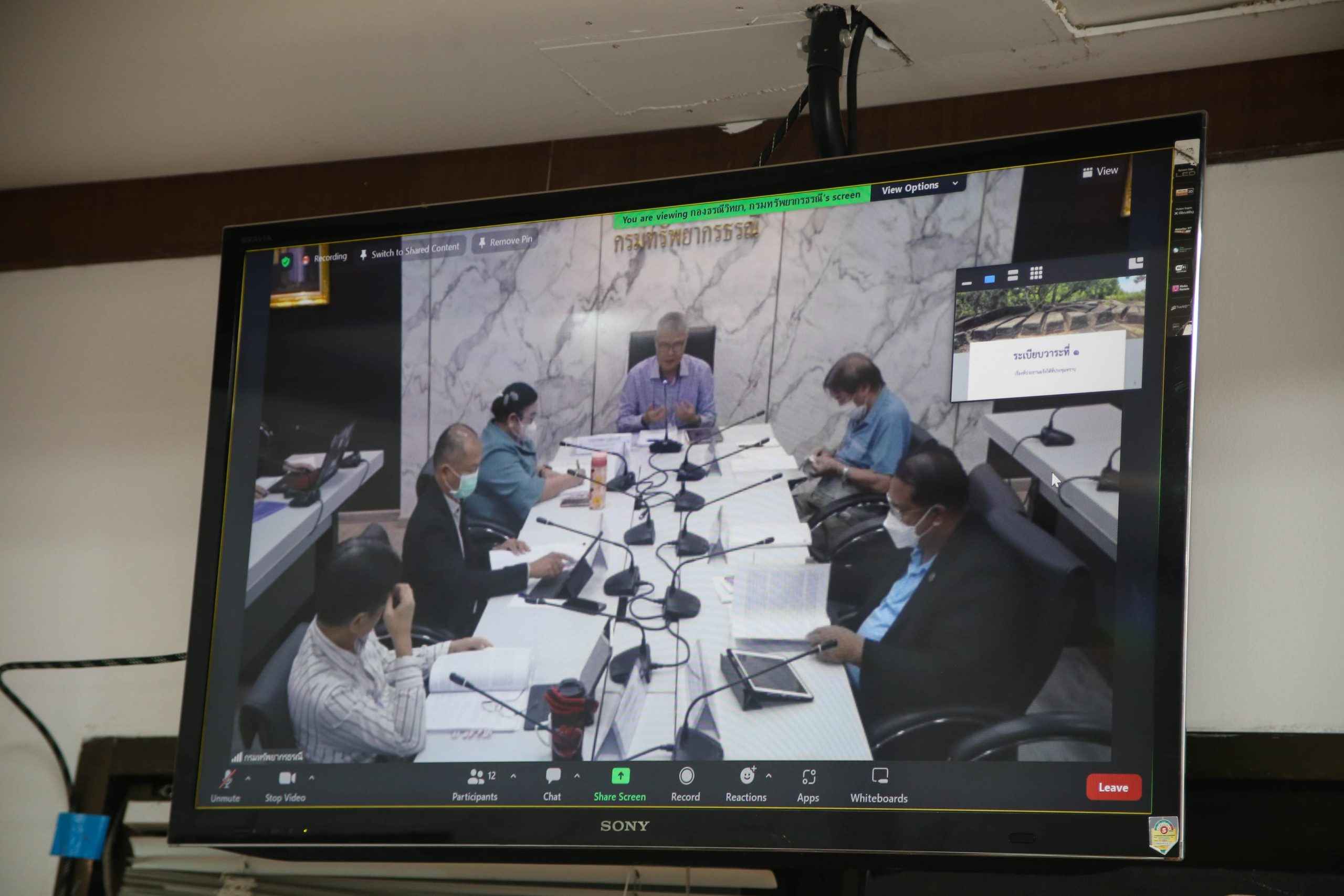 เจ้าหน้าที่ที่เกี่ยวข้องเข้าร่วมประชุม ผ่านการประชุมทางไกล (VDO Conference) ณ ห้องประชุมปทุมมาศ ชั้น 1 อบจ.อุบลราชธานี