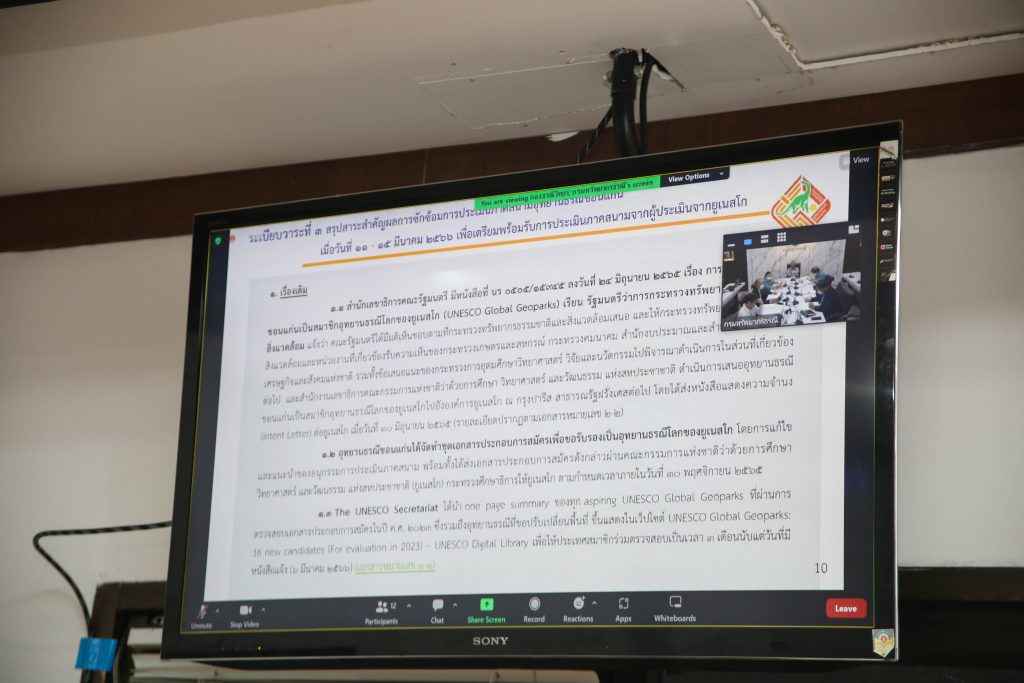 โดยที่ประชุมได้พิจารณาร่างหลักเกณฑ์การประเมินซ้ำเพื่อคงสถานการณ์เป็นอุทยานธรณีประเทศไทย การขอปรับเปลี่ยนพื้นที่ และการขอเปลี่ยนชื่ออุทยานธรณีประเทศไทย รวมทั้งพิจารณาการประเมินซ้ำภาคสนามเพื่อคงสถานะการเป็นอุทยานธรณีประเทศไทย ของอุทยานธรณีผาชัน สามพันโบก ทั้งนี้เพื่อให้การดำเนินงานดังกล่าวเป็นไปด้วยความเรียบร้อยบรรลุวัตถุประสงค์ ต่อไป