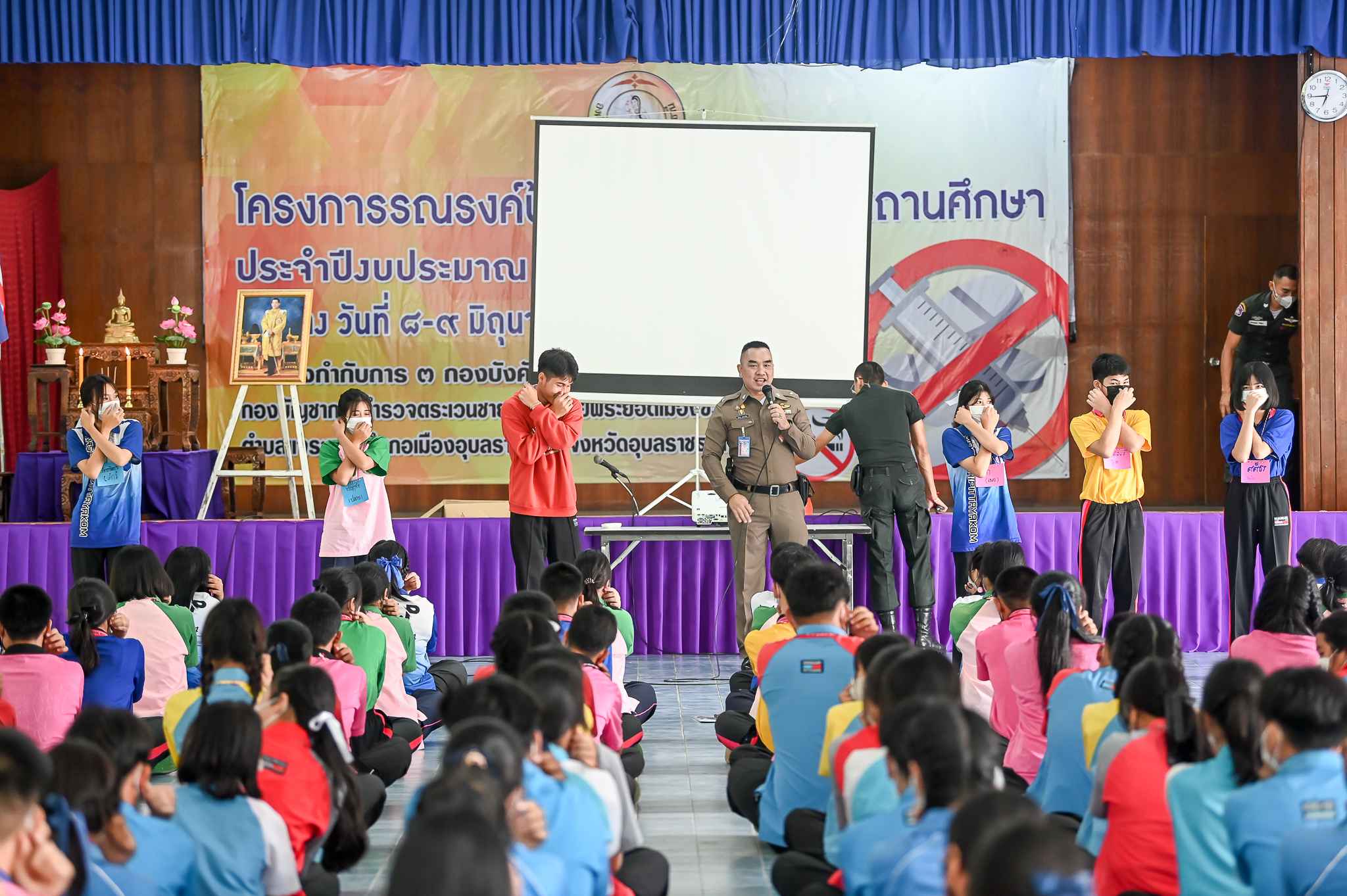 โดยอบจ.อุบลราชธานี จัดอบรมตามโครงการรณรงค์ป้องกันยาเสพติดในสถานศึกษา โรงเรียนในสังกัด อบจ.อุบลราชธานี ในระหว่างวันที่ 8-9 มิถุนายน 2566 โดยเชิญวิทยากรจากสถานีตำรวจภูธรวารินชำราบ และวิทยากรจากกองกำกับการ 3 กองบังคับการฝึกพิเศษ กองบัญชาการตำรวจตระเวนชายแดน ค่ายพระยอดเมืองขวางมาบรรยายให้ความรู้เกี่ยวกับ ยุทธศาสตร์พลังแผ่นดิน เอาชนะยาเสพติด ความรู้เรื่องยาเสพติด ภัยสังคม และการป้องกัน”