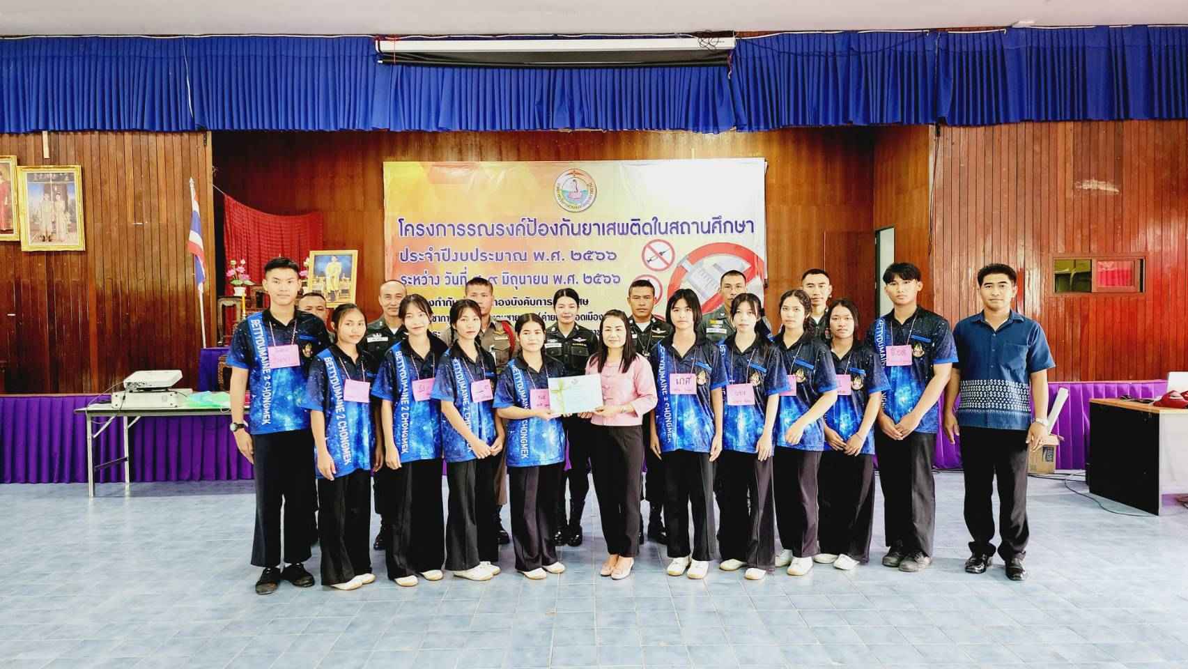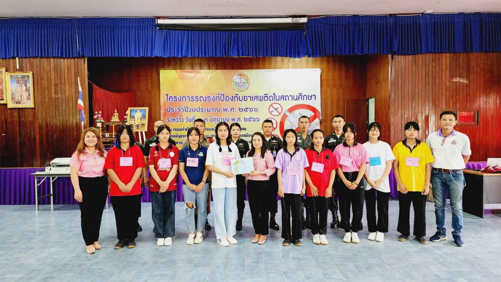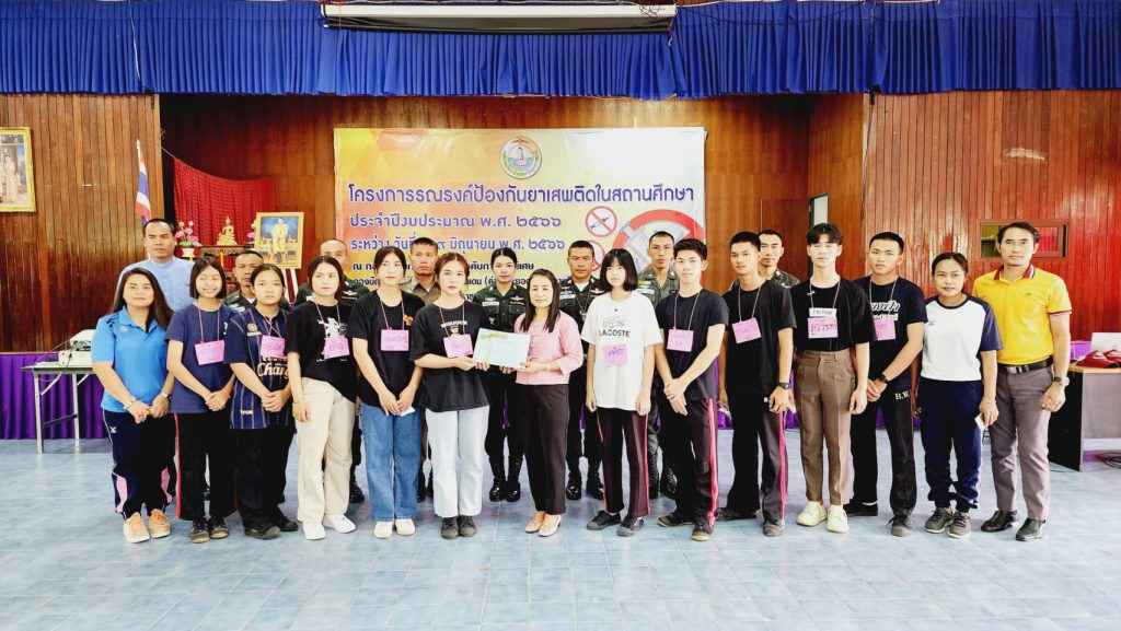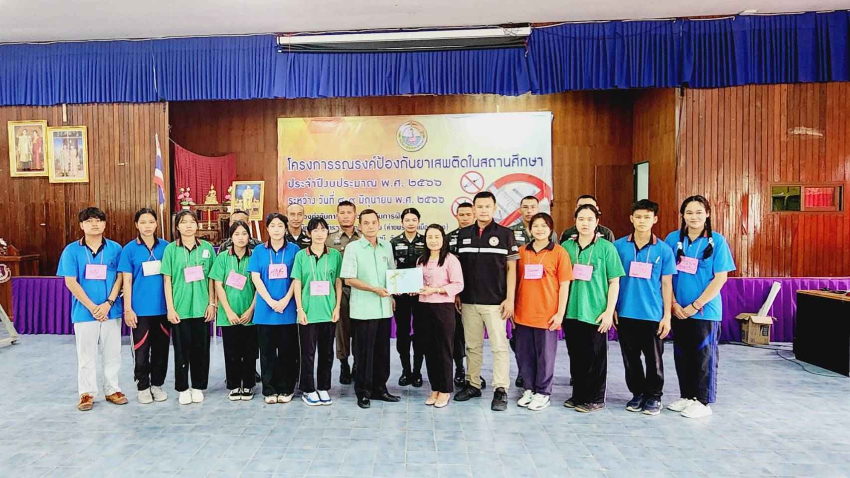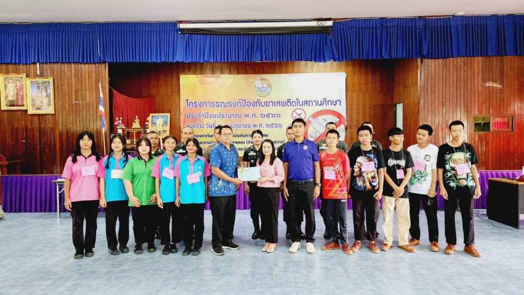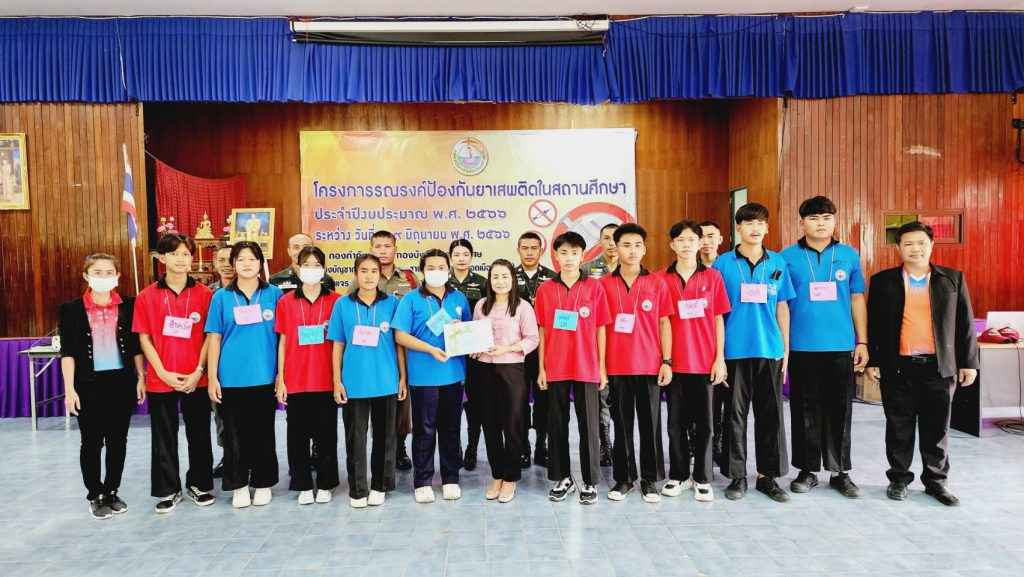 มอบใบประกาศให้ผู้เข้าร่วมอบรมโครงการรณรงค์ป้องกันยาเสพติดในสถานศึกษา ประจำปีงบประมาณ พ.ศ.2566 ซึ่งจัดขึ้นในระหว่างวันที่ 8-9 มิถุนายน 2566 ณ กองกำกับการ 3 กองบังคับการฝึกพิเศษ กองบัญชาการตำรวจตระเวรชายแดน (ค่ายพระยอดเมืองขวาง) อ.เมืองอุบลราชธานี จ.อุบลราชธานี