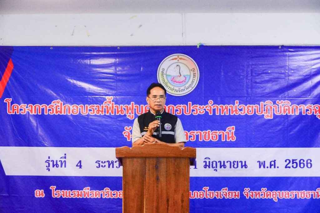 ด้วยกองสาธารณสุข อบจ.อุบลราชธานี จัดโครงการฝึกอบรมฟื้นฟูบุคลากรประจำหน่วยปฏิบัติการฉุกเฉิน จังหวัดอุบลราชธานี เพื่อพัฒนาบุคลากรประจำหน่วยปฏิบัติการฉุกเฉิน ให้มีความรู้ ทักษะประสบการณ์ในการช่วยเหลือผู้ป่วยฉุกเฉิน และเพื่อเตรียมความพร้อมในการปฏิบัติงานด้านการแพทย์ฉุกเฉินให้เป็นระบบมีประสิทธิภาพและมาตรฐานมากยิ่งขึ้น