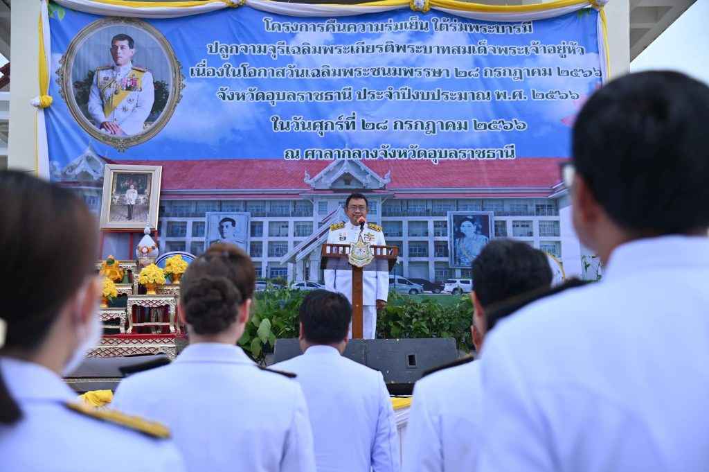 เนื่องในโอกาสวันเฉลิมพระชนมพรรษา พระบาทสมเด็จพระเจ้าอยู่หัวฯ คืนความร่มเย็น ใต้ร่มพระบารมี ณ ศาลากลางจังหวัดอุบลราชธานี โดยมีนายชลธี ยังตรง พร้อมด้วยหัวหน้าส่วนราชการ อปท. ข้าราชการ ประชาชนจังหวัดอุบลราชธานี ร่วมกิจกรรมดังกล่าวอย่างพร้อมเพรียง
