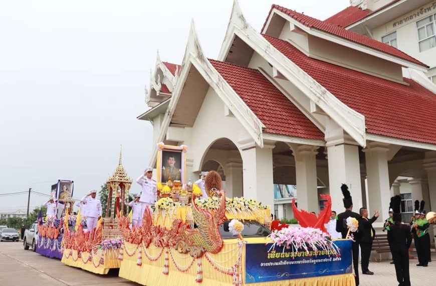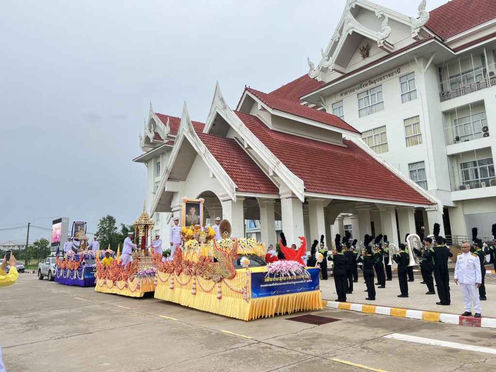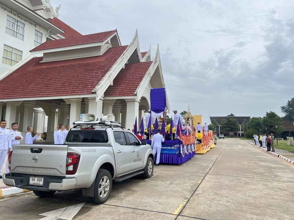 กองยุทธศาสตร์และงบประมาณ อบจ.อุบลราชธานี นำรถประชาสัมพันธ์พร้อมพิธีกร ประชาสัมพันธ์นำริ้วขบวนอัญเชิญเทียนพรรษาพระราชทานพระบาทสมเด็จพระวชิรเกล้าเจ้าอยู่หัว และผ้าอาบน้ำฝนพระราชทาน สมเด็จพระกนิษฐาธิราชเจ้า กรมสมเด็จพระเทพรัตนราชสุดาสยามบรมราชกุมารี ออกจากศาลากลางจังหวัดอุบลราชธานี เพื่อมาประดิษฐานที่บริเวณหน้าศาลหลักเมืองเตรียมนำถวายที่วัดสุปัฏนารามวรวิหารในวันพรุ่งนี้ ( 2 ส.ค.2566)