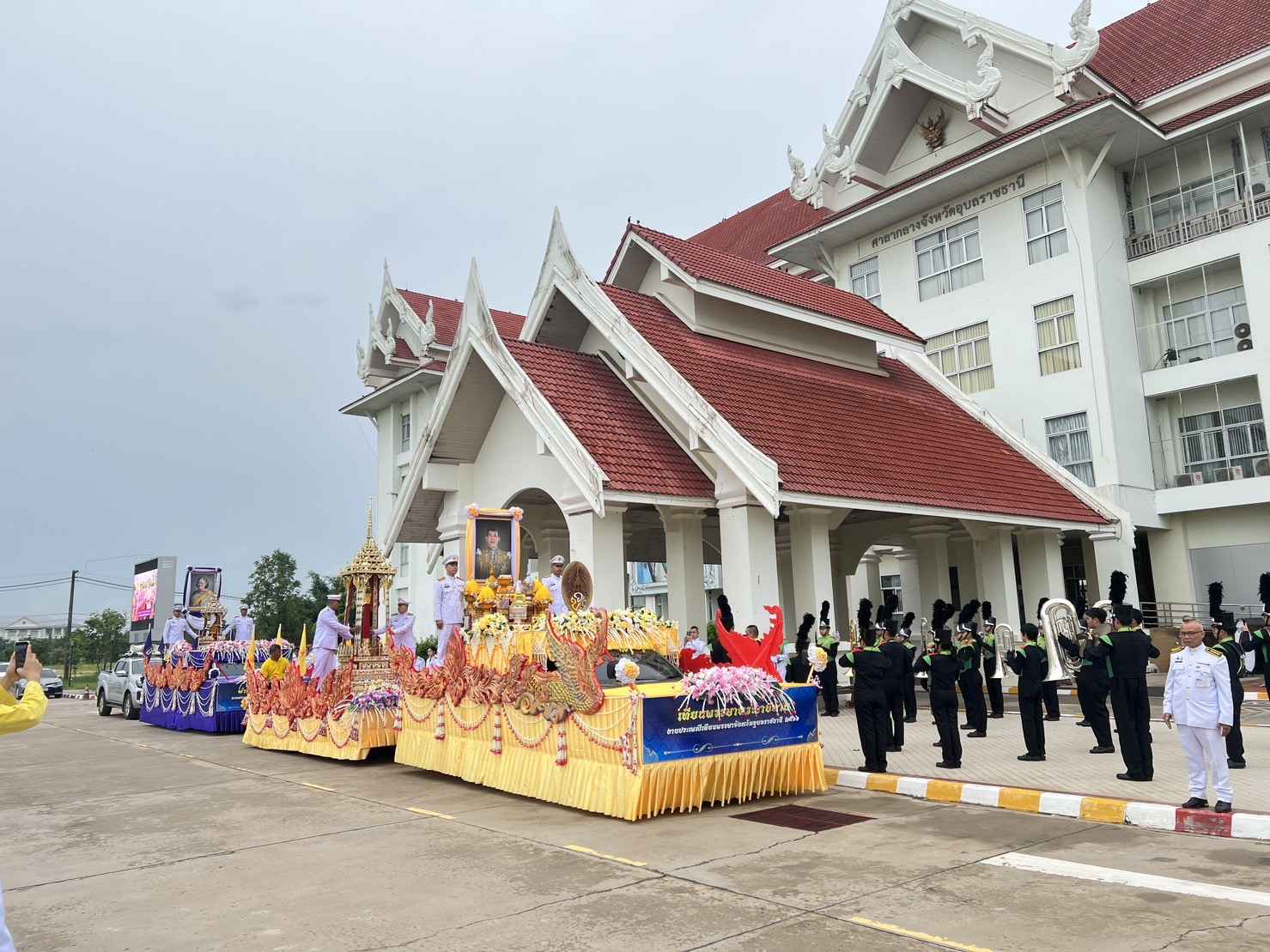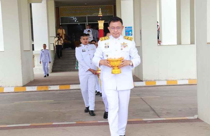 โดยนายชลธี ยังตรง ผู้ว่าราชการจังหวัดอุบลราชธานี ผู้พิพากษาหัวหน้าศาล รองผู้ว่าราชการจังหวัดอุบลราชธานี พร้อมด้วยหัวหน้าส่วนราชการ ข้าราชการ ทหาร ตำรวจ นักเรียน นักศึกษา และประชาชนได้ร่วมอัญเชิญโดยตั้งขบวนแห่จากหน้าศาลกลางจังหวัดอุบลราขธานีเคลื่อนไปยังบริเวณหน้าศาลหลักเมืองโดยมีรถประชาสัมพันธ์พร้อมพิธีกร ของ อบจ.อุบลราชธานี ประกาศประชาสัมพันธ์ให้ประชาชนทราบในระหว่างการเดินทางด้วย