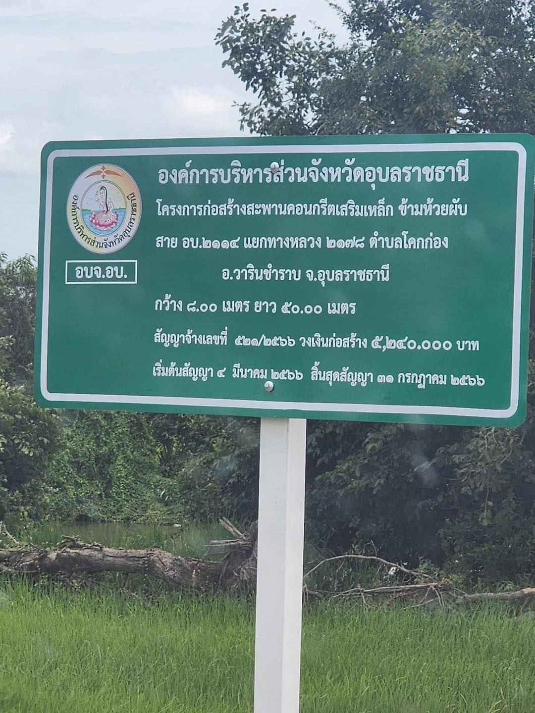 3. โครงการก่อสร้างสะพานคอนกรีตเสริมเหล็ก ข้ามห้วยผับ สาย อบ.2114 แยกทางหลวง 2178 – บ้านโคกก่อง อ.วารินชำราบ จ.อุบลราชธานี