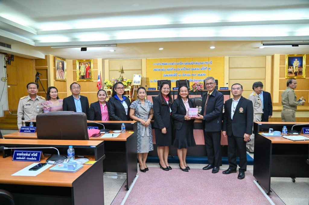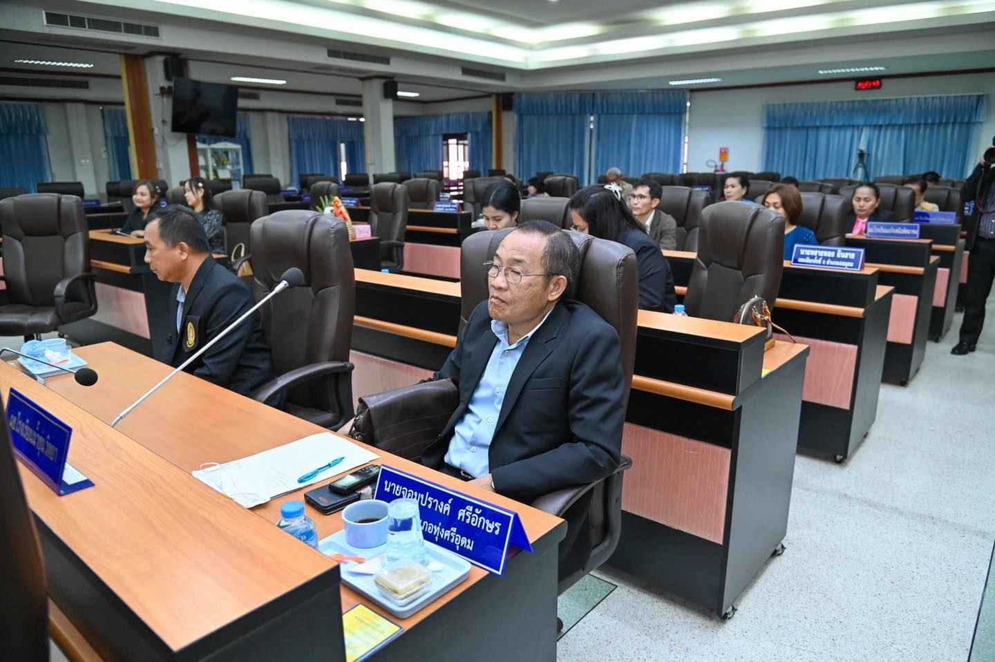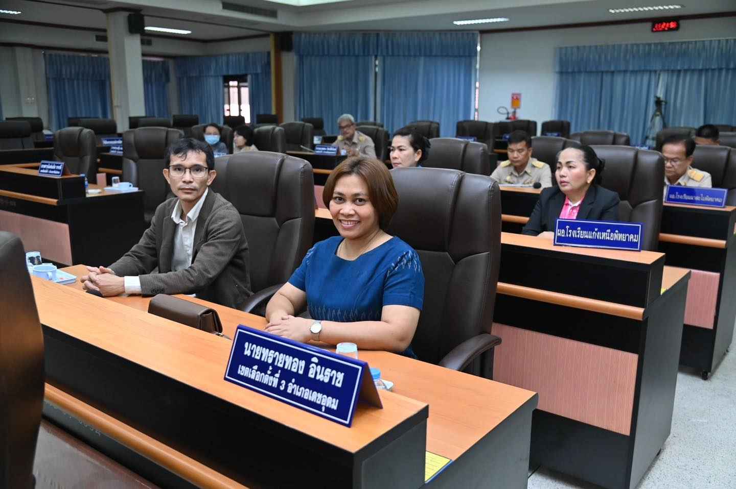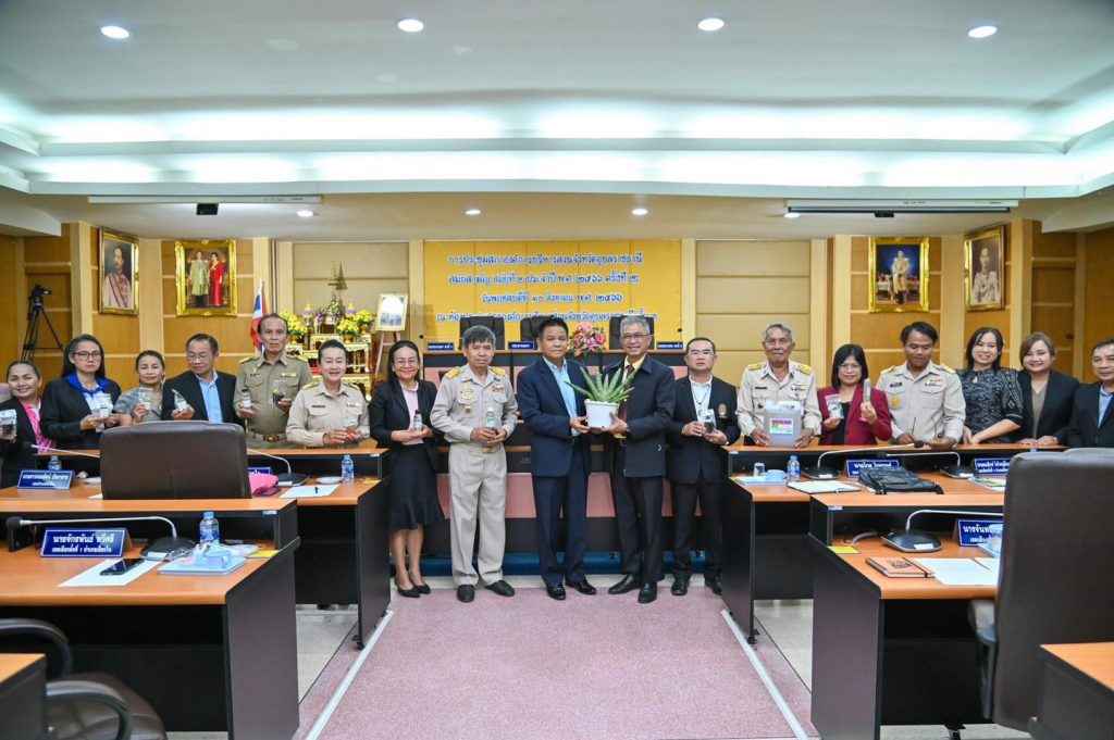 รองนายก อบจ.อุบลราชธานี พร้อมด้วยนายศักดิ์นิพน สว่างวงศ์ ผู้เชี่ยวชาญพิเศษด้านการศึกษา ศาสนาและวัฒนธรรม และหัวหน้าส่วนราชการที่เกี่ยวข้อง