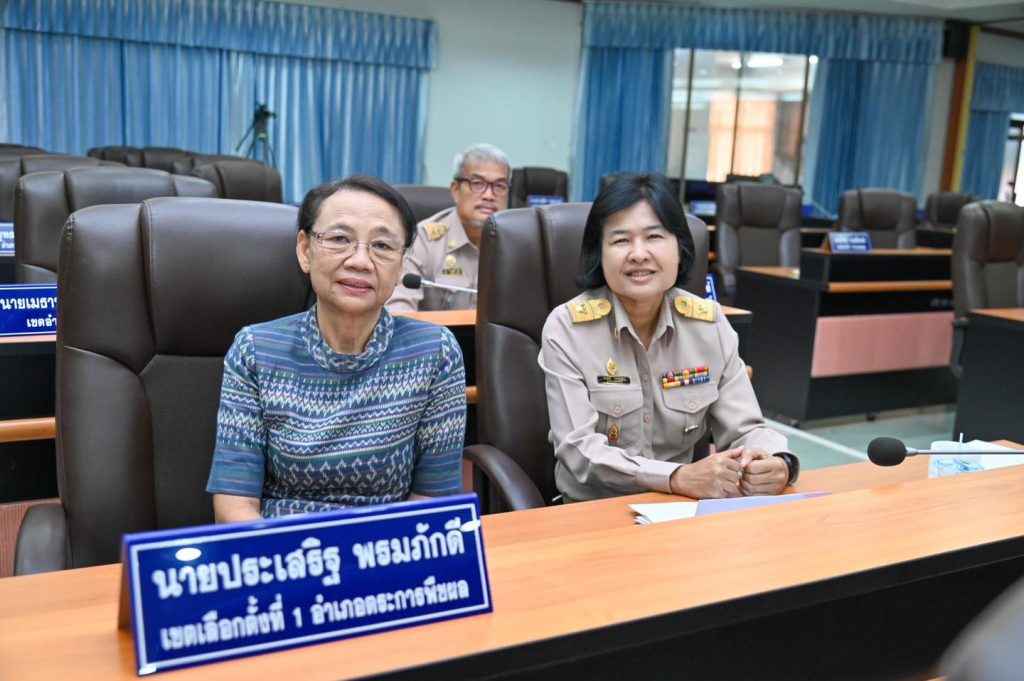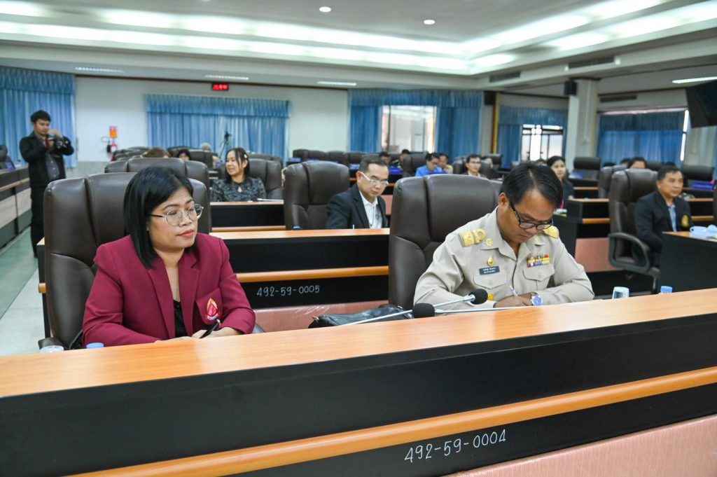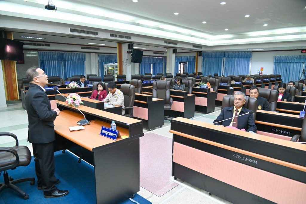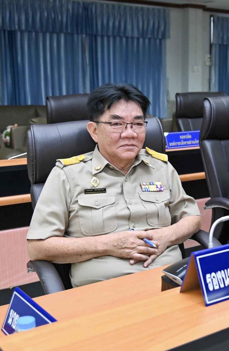 รองนายก อบจ.อุบลราชธานี พร้อมด้วยนายศักดิ์นิพน สว่างวงศ์ ผู้เชี่ยวชาญพิเศษด้านการศึกษา ศาสนาและวัฒนธรรม และหัวหน้าส่วนราชการที่เกี่ยวข้อง