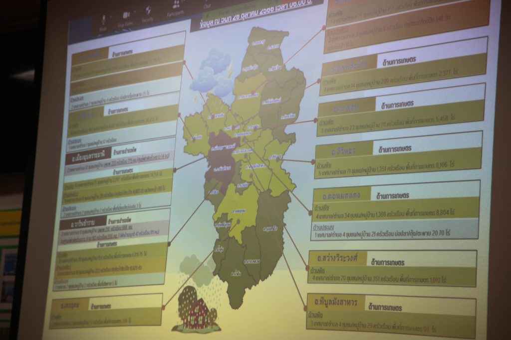 ZOOM Meeting ณ ที่ตั้งอำเภอ โดยที่ประชุมมีการรายงานผลกระทบที่ประชาชนได้รับจากอุทกภัย การขอประกาศ