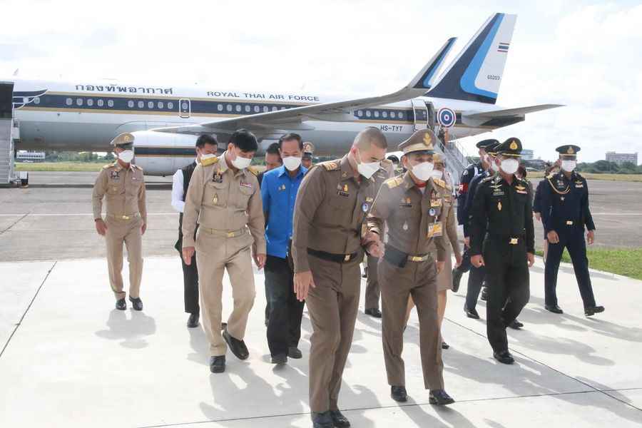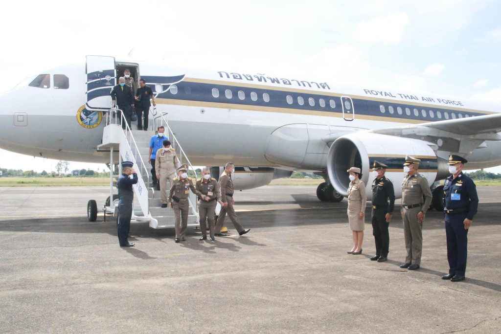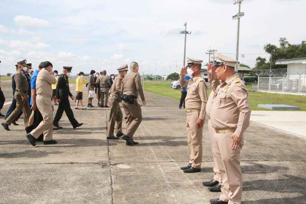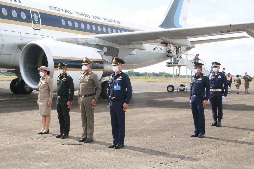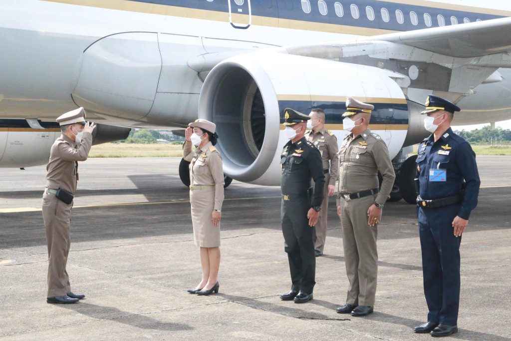 โดยมี นางทรงลักษณ์ วรภัย รองผู้ว่าราชการจังหวัดอุบลราชธานี พร้อมด้วยหัวหน้าส่วนราชการ ทหาร ตำรวจ และผู้แทนหน่วยงานที่เกี่ยวข้องร่วมให้การต้อนรับ ณ ท่าอากาศยานทหาร กองบิน ๒๑
