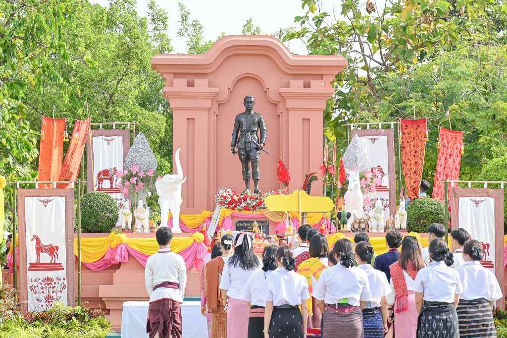 สักการะด้วยมาลัยกร พร้อมกล่าวสดุดีวีรกรรมพระปทุมวรราชสุริยวงษ์ (เจ้าคำผง) เพื่อเป็นการเชิดชูคุณงามความดี