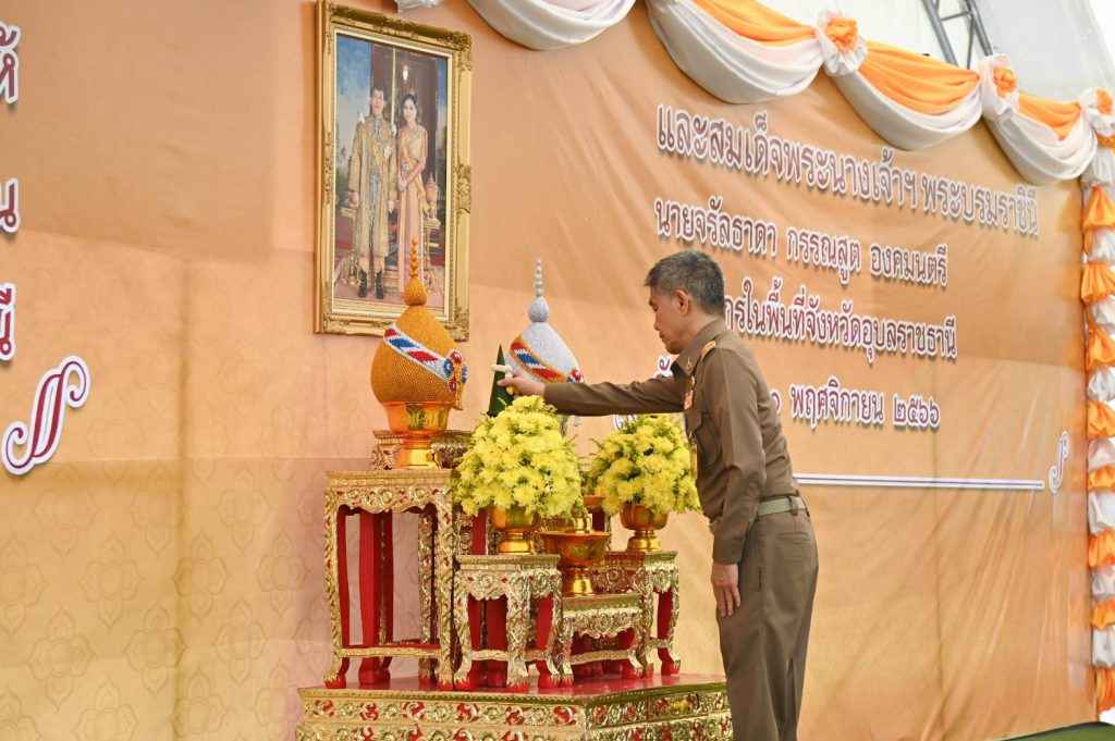 ผู้ว่าราชการจังหวัดอุบลราชธานี พร้อมด้วยหัวหน้าส่วนราชการ พ่อค้า ประชาชน ร่วมพิธี โดยมีพิธีมอบความช่วยเหลือพระราชทาน ตามโครงการสืบสานพระราชปณิธาน พระบาทสมเด็จพระเจ้าอยู่หัว และสมเด็จพระนางเจ้าฯ พระบรมราชินี พร้อมเชิญถุงยังชีพพระราชทานมอบแก่ราษฎรผู้สูงอายุและผู้พิการ รวมถึงราษฎรในพื้นที่ จำนวน 500 ราย และพิธีเชิญพระบรมฉายาลักษณ์ หนังสือสารานุกรมไทยสำหรับเยาวชน เครื่องรับสัญญาณดาวเทียมเพื่อการศึกษา มอบแก่หน่วยงานราชการในพื้นที่