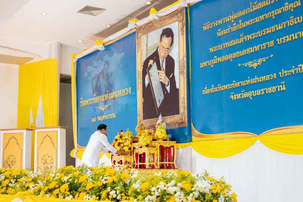 ณ หอประชุมศาลากลางจังหวัดอุบลราชธานี เพื่อเป็นการน้อมรำลึกในพระมหากรุณาธิคุณ ที่พระองค์ท่านทรงตรากตรำพระวรกายเพื่อยกระดับคุณภาพชีวิต บำบัดทุกข์บำรุงสุขให้แก่พสกนิกร ราษฎรผู้ยากไร้ ด้อยโอกาสทั่วทุกภาคของประเทศไทยให้มีความเป็นอยู่ที่ดีขึ้น ตลอดจนพระอัจฉริยะภาพและพระวิริยะอุตสาหะ ในการทุ่มเทการประดิษฐ์วิจัยพัฒนา โครงการฝนพระราชดำริฝนหลวงที่ก่อให้เกิดประโยชน์คุณูปการแก่ปวงชนชาวไทย และนานาประเทศ ซึ่งคณะรัฐมนตรีได้มีมติเมื่อวันที่ 20 สิงหาคม 2545 เฉลิมเกียรติ พระบาทสมเด็จพระบรมชนกาธิเบศร มหาภูมิพลอดุลยเดชมหาราช บรมนาถบพิตร ในฐานะที่ทรงเป็น พระบิดาแห่งฝนหลวง และได้กำหนดให้วันที่ 14 พฤศจิกายน ของทุกปี