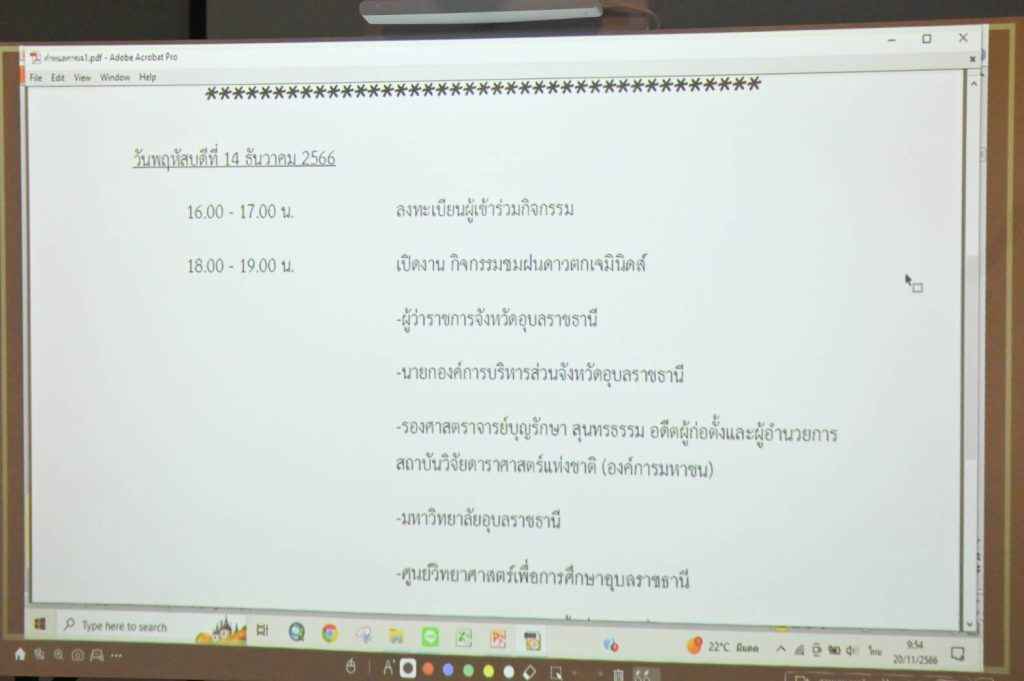 ผู้นำหมู่บ้านในพื้นที่เข้าร่วมประชุม โดยที่ประชุมได้พิจารณาการจัดกิจกรรมดูดาว Dark Sky Star Party ผาแต้ม,