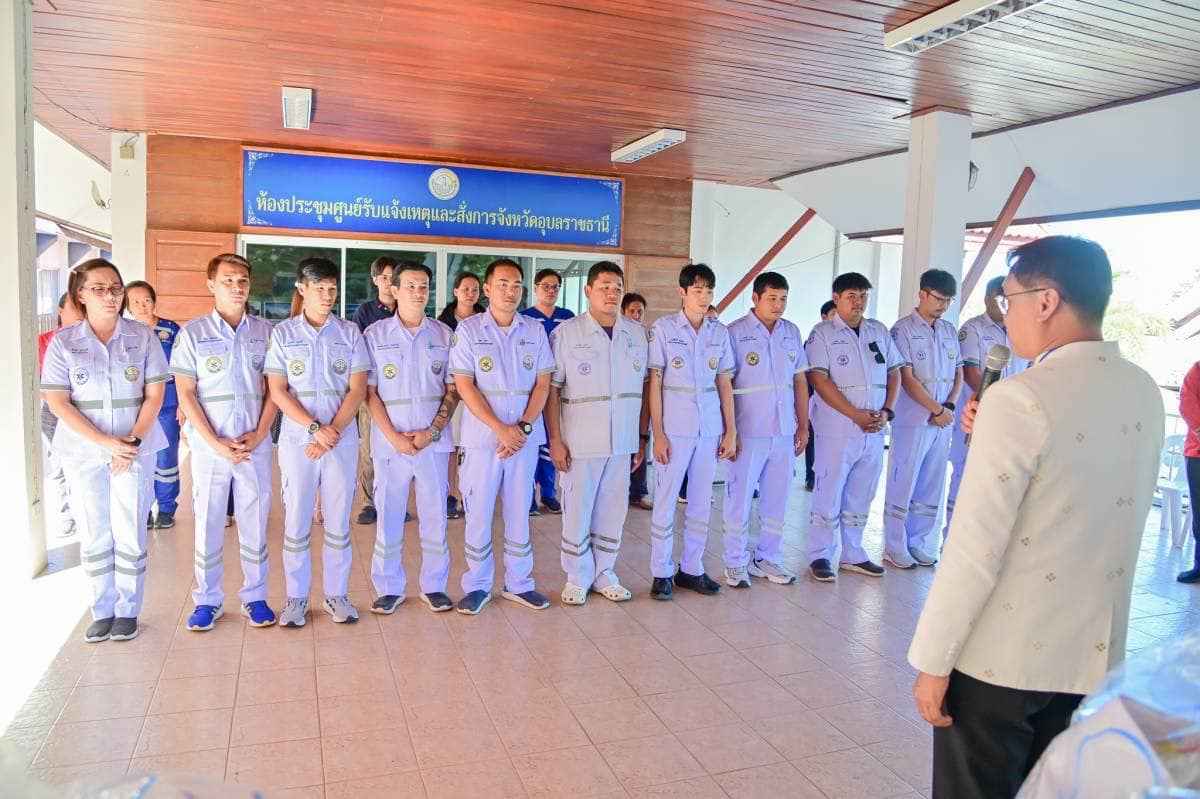 วันที่ 27 ธันวาคม 2567 นายอภิศักดิ์ ทองกลึง รองปลัดองค์การบริหารส่วนจังหวัด รักษาราชการแทนปลัด องค์การบริหารส่วนจังหวัด ปฏิบัติหน้าที่นายกองค์การบริหารส่วนจังหวัดอุบลราชธานี เดินทางไปตรวจเยี่ยมและให้กำลังใจแก่เจ้าหน้าที่ศูนย์รับแจ้งเหตุและสั่งการ 1669 ในการปฏิบัติหน้าที่ช่วยเหลือผู้ประสบอุบัติเหตุทางถนนช่วงเทศกาลปีใหม่ ปี 2568 ณ บริเวณศูนย์แสดงและจำหน่ายสินค้า หนึ่งตำบล หนึ่งผลิตภัณฑ์ (OTOP) องค์การบริหารส่วนจังหวัดอุบลราชธานี