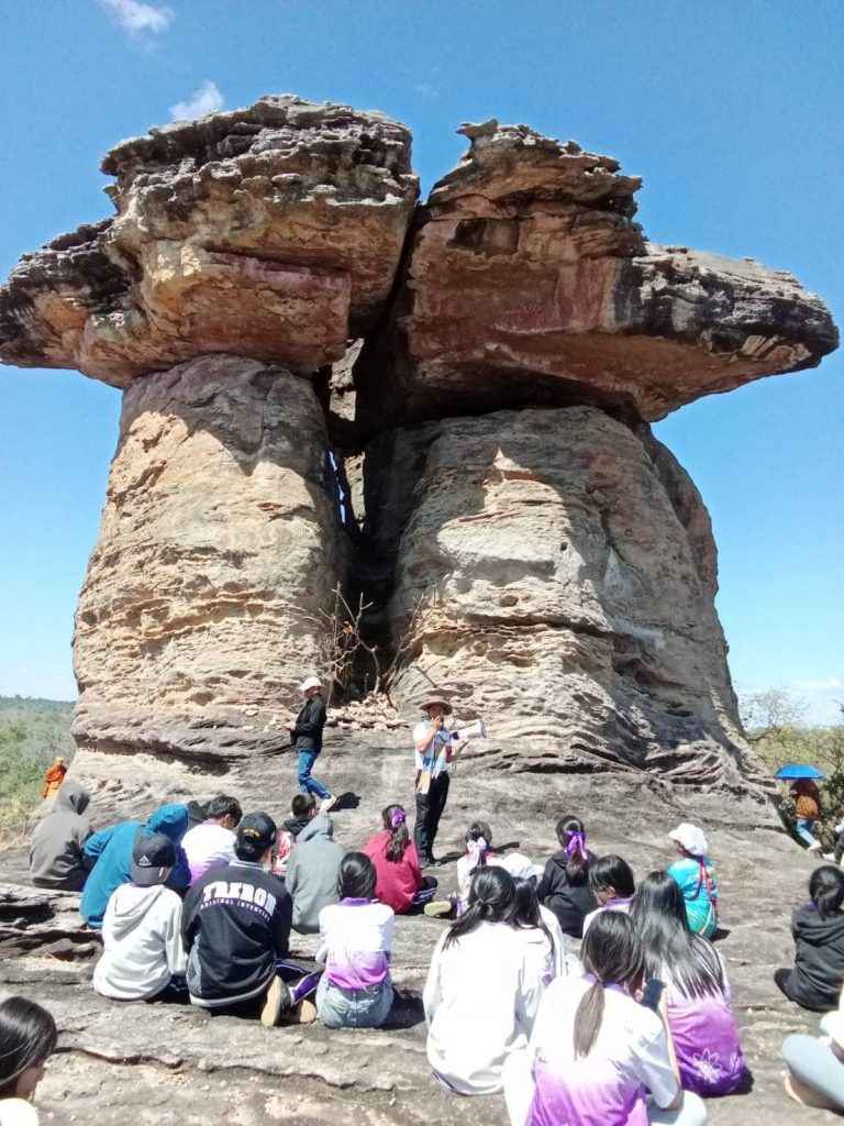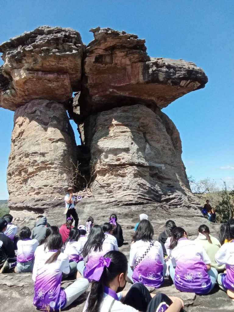 วันนี้ 9 กุมภาพันธ์ 2568 เวลา 09.00 น. นายกานต์ กัลป์ตินันท์ นายก อบจ.อุบลราชธานี ในฐานะผู้อำนวยการอุทยานธรณีอุบลราชธานี มอบหมายให้นางจิรภัทร์ สุภารัตน์ พร้อมด้วยนายสุริศักดิ สุภารัตน์ และนายปนิวัตร เส้นเกษ ครูโรงเรียนเหล่างามพิทยาคม สังกัดองค์การบริหารส่วนจังหวัดอุบลราชธานี ร่วมให้การต้อนรับ และเป็นวิทยากรบรรยายให้ความรู้ ด้านธรณีวิทยาแก่ คณะครู-นักเรียนโรงเรียนม่วงสามสิมอัมพวันวิทยา จำนวน 95 คน ซึ่งเดินทางมาทัศนศึกษาเรียนรู้เกี่ยวกับธรณีวิทยาที่เสาเฉลียงยักษ์ และต้นจามจุรี ซึ่งเป็นแหล่งธรณีวิทยาที่มีความสำคัญต่อการศึกษาเรียนรู้ควรคู่แก่การอนุรักษ์ เพื่อให้เยาวชนรุ่นหลังได้ศึกษาเรียนรู้และอนุรักษ์ด้านธรณีวิทยาต่อไป