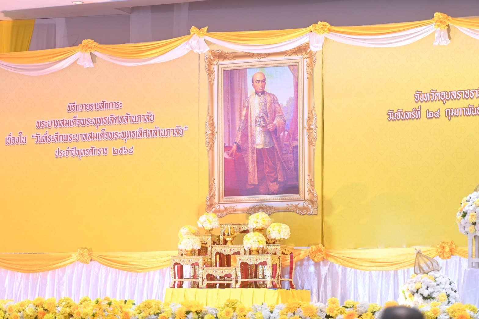 ภายในงานผู้ว่าราชการจังหวัดอุบลราชธานี พร้อมด้วยหัวหน้าส่วนราชการ ได้วางพานพุ่มดอกไม้ ถวายราชสักการะ เบื้องหน้าพระบรมรูปพระบาทสมเด็จพระพุทธเลิศหล้านภาลัย และกล่าวน้อมรำลึกในพระมหากรุณาธิคุะมหากรุณาธิคุณ