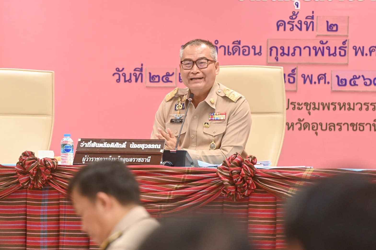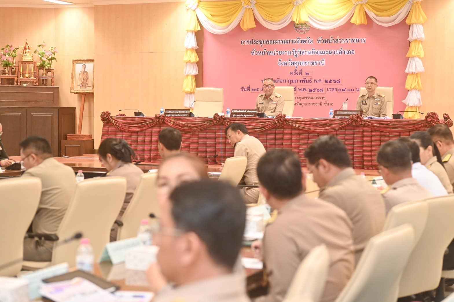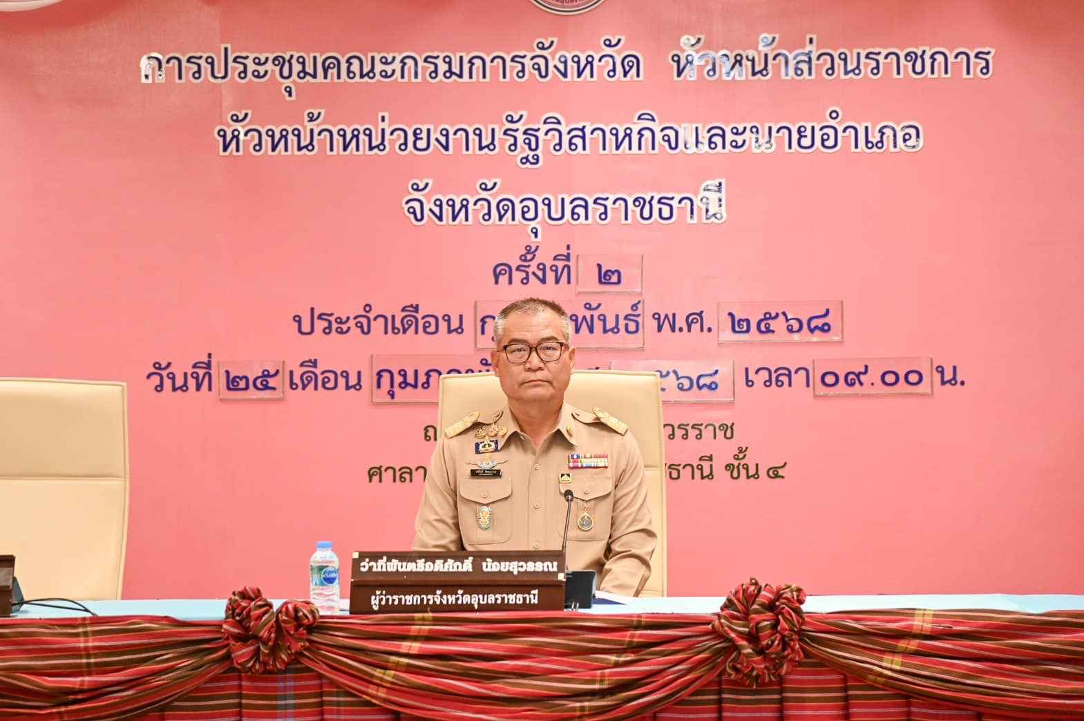 ครั้งที่ 2/2568 ประจำเดือนกุมภาพันธ์ 2568 ณ ห้องประชุมพรหมวรราช ชั้น 4 ศาลากลางจังหวัดอุบลราชธานี โดยมีว่าที่พันตรี อดิศักดิ์ น้อยสุวรรณ ผู้ว่าราชการจังหวัดอุบลราชธานี เป็นประธานในการประชุม และมีหัวหน้าส่วนราชการภายในจังหวัดเข้าร่วมประชุม