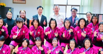 นักกีฬาจากโรงเรียนน้ำขุ่นวิทยา โรงเรียนในสังกัด อบจ.อุบลราชธานี นำเหรียญรางวัลเข้าพบผู้บริหาร เพื่อรายงานผลการแข่งขันและรับโอวาท